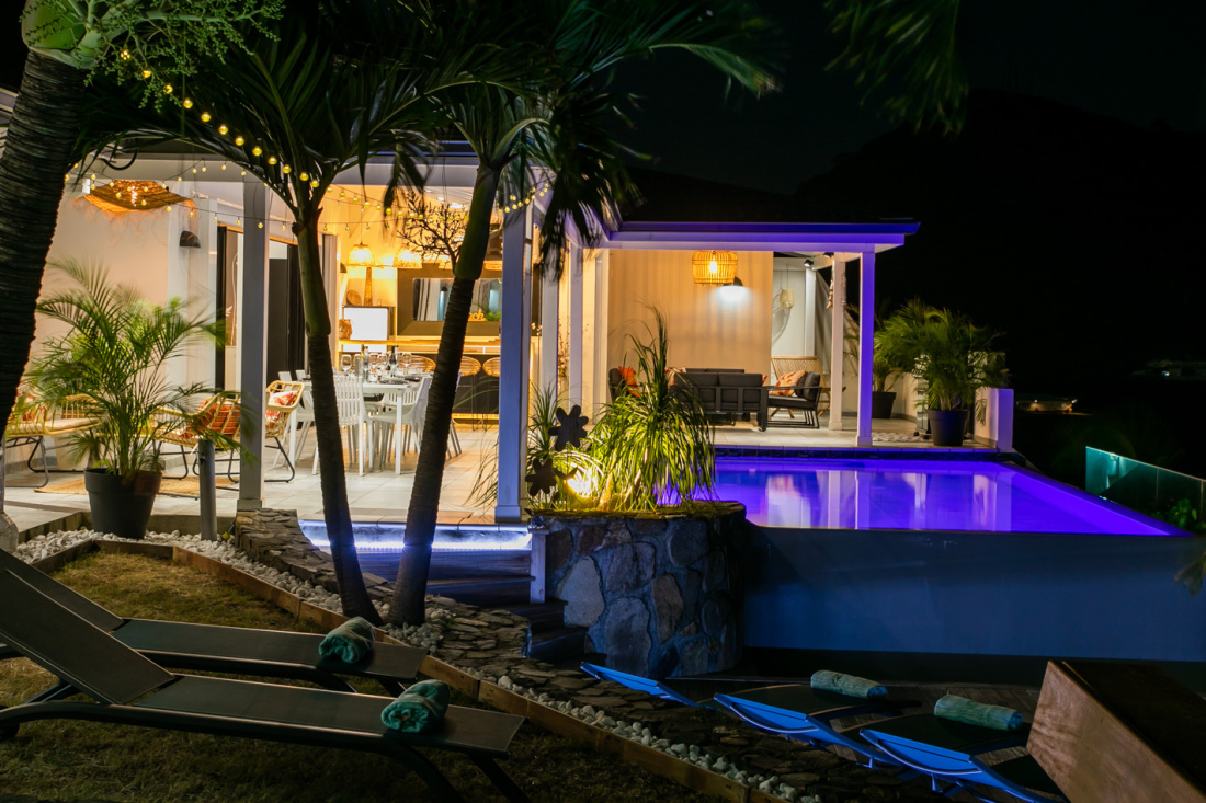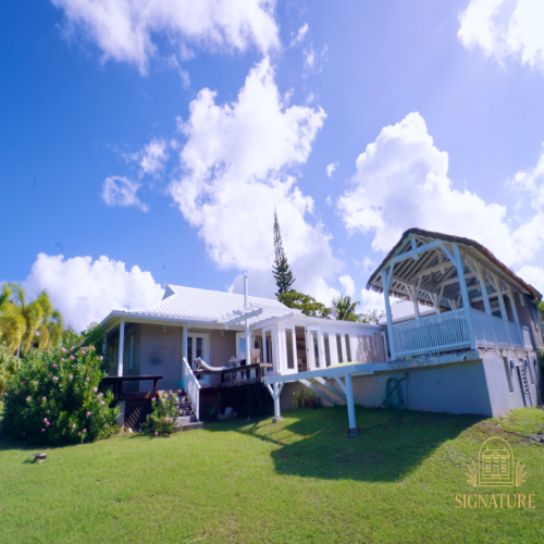 À vendre – Villa d’architecte avec vue mer à Mont Vernon 3 Située sur les hauteurs de Mont Vernon 3, au sein d’une résidence sécurisée, cette villa d’architecte développe environ 220 m² habitables, complétés par un niveau inférieur de 65 m² actuellement aménagé en garage fermé. Conçue pour offrir volume et lumière, la maison propose : Un vaste séjour ouvert sur l’extérieur Une cuisine américaine moderne, avec îlot central 4 suites, chacune avec salle d’eau, WC, dressing et accès à la terrasse Une terrasse couverte prolongée par une piscine, un jacuzzi et différents espaces de détente Édifiée sur un terrain de 1 606 m², la propriété bénéficie également : D’une citerne de 85 m³ D’un générateur D’un abri voiture Charges de copropriété : 180 € / trimestre Taxe foncière : 2 677 € / an Un bien rare sur le marché, offrant un cadre de vie exceptionnel et des prestations de standing. Contactez-nous pour plus d'informations ou organiser une visite. Alix Primeon – Signature SXM +590 691 27 49 85 alix@signature-sxm.com