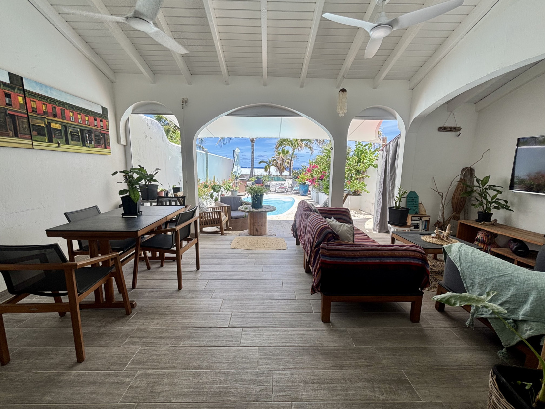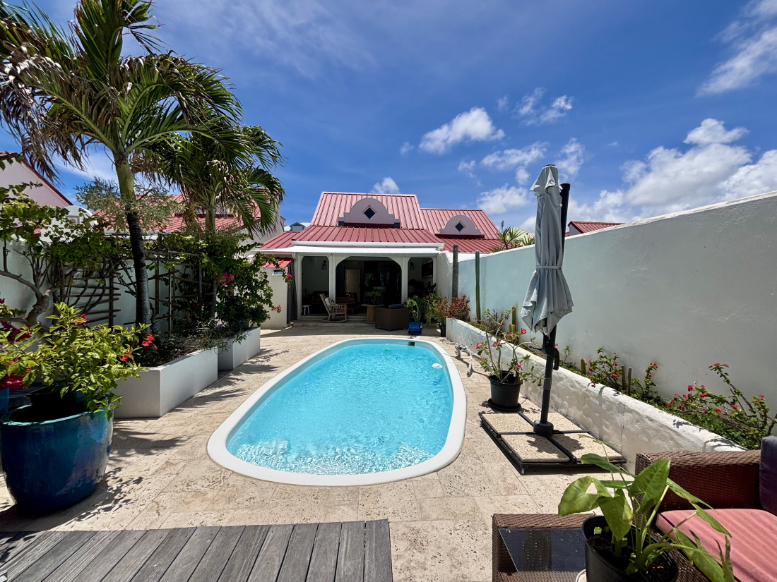 Découvrez cette charmante villa caribéenne, idéalement située dans le secteur recherché d'Oyster Pond, offrant un cadre de vie paisible et une vue mer panoramique. Prix : 457 000 € FAI Charges : 260 €/trimestre – Taxe foncière : 1 300 € Mandat n°1861 Parfaitement agencée, cette maison duplex mitoyenne se compose de deux chambres (dont une à l'étage), d'une salle de bains avec WC au rez-de-chaussée ainsi que d'une seconde salle de bains à l'étage. Vous bénéficierez également d'un séjour lumineux et d'une cuisine américaine moderne, ouverte sur une spacieuse terrasse vue mer, idéale pour recevoir. À l'extérieur, vous profiterez d'un véritable espace de vie convivial avec piscine privative, parfait pour se détendre en toute intimité. Un petit jardin à l'arrière vient compléter l'ensemble. Située dans une copropriété de 10 lots, cette villa offre des prestations appréciables : deux citernes, garage fermé et remise. Aucun travaux à prévoir – bien vendu meublé, prêt à vivre ou à louer immédiatement. Environnement calme, à proximité des plages et des commodités. Alix Priméon – Signature SXM +590 691 27 49 85 alix@signature-sxm.com